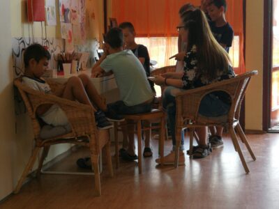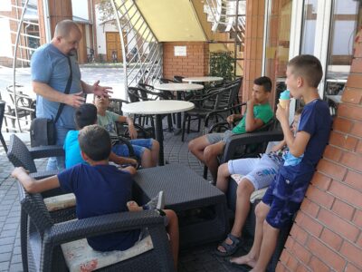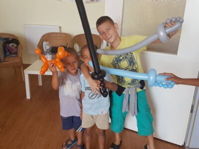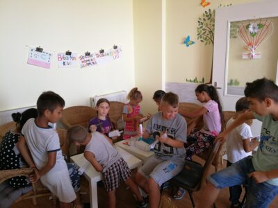 A gyermekek részére színes programokkal készültünk a szabadidő hasznos eltöltése érdekében. Fejlesztő és önismereti csoportok, bűnmegelőzés, ügyességi versenyek, kutyaterápiás foglalkozás, lufihajtogatás, kisvonatozás a Duna-partra, fagyizás, pizzázás voltak a program részei.